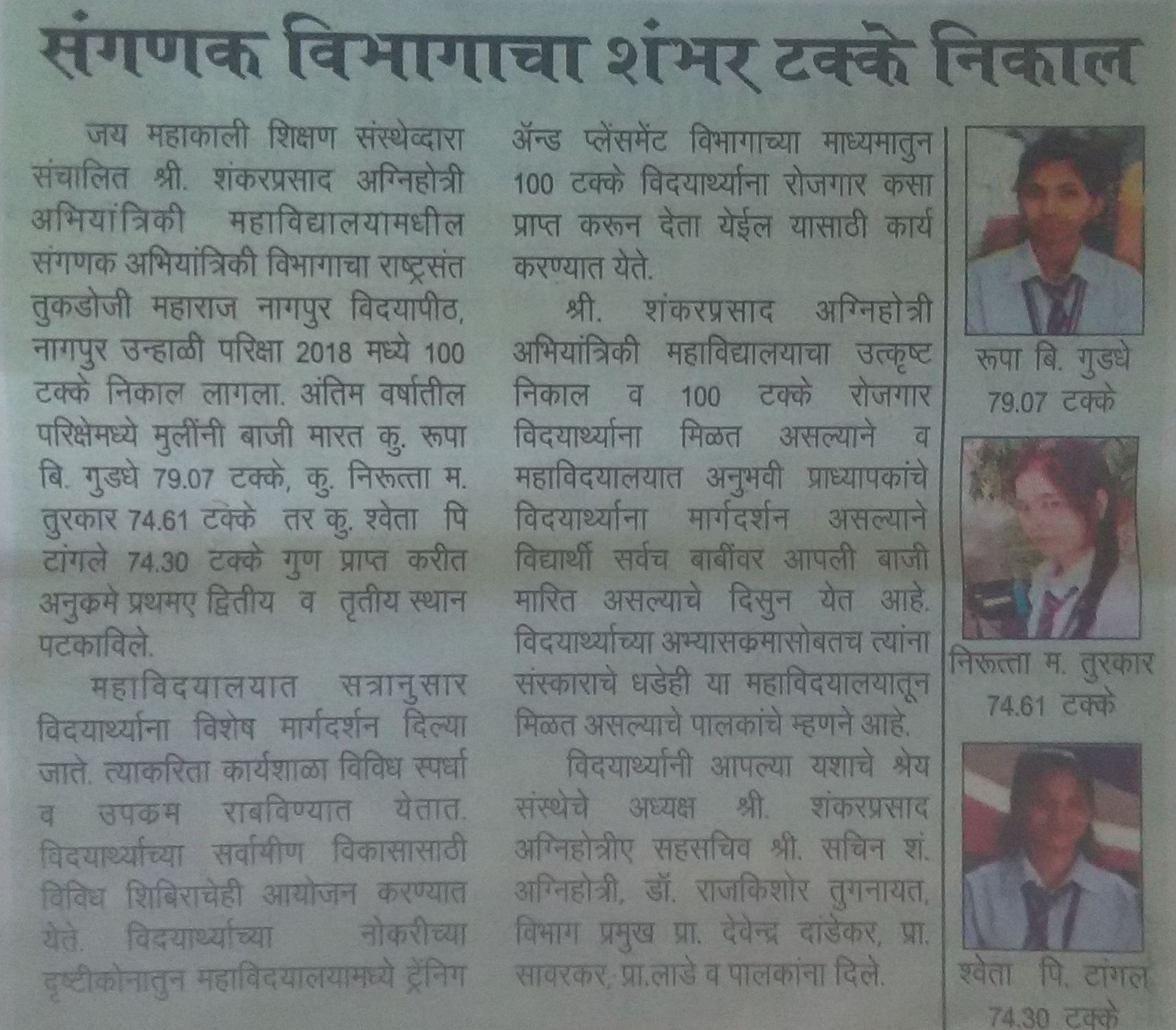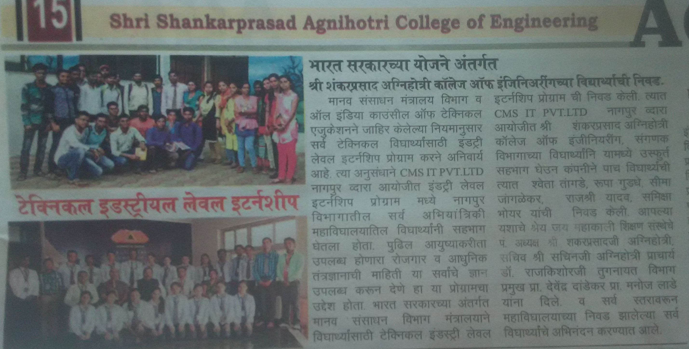 Campus Selection to Student CSE and E&TC Dept. From CMS Pvt. Lmt at Nagpur