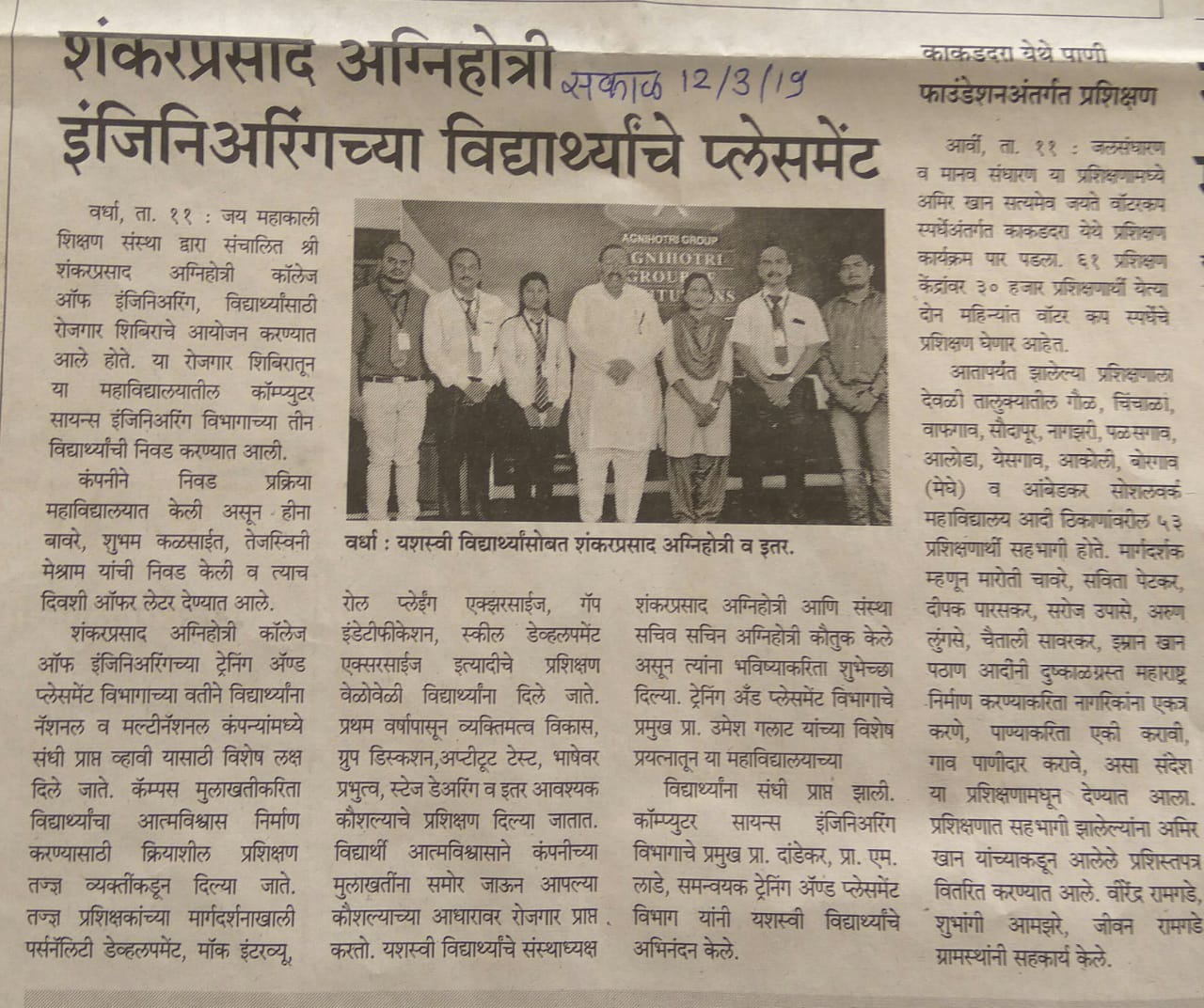 Placement of CSE students with Kiran Academy, Pune