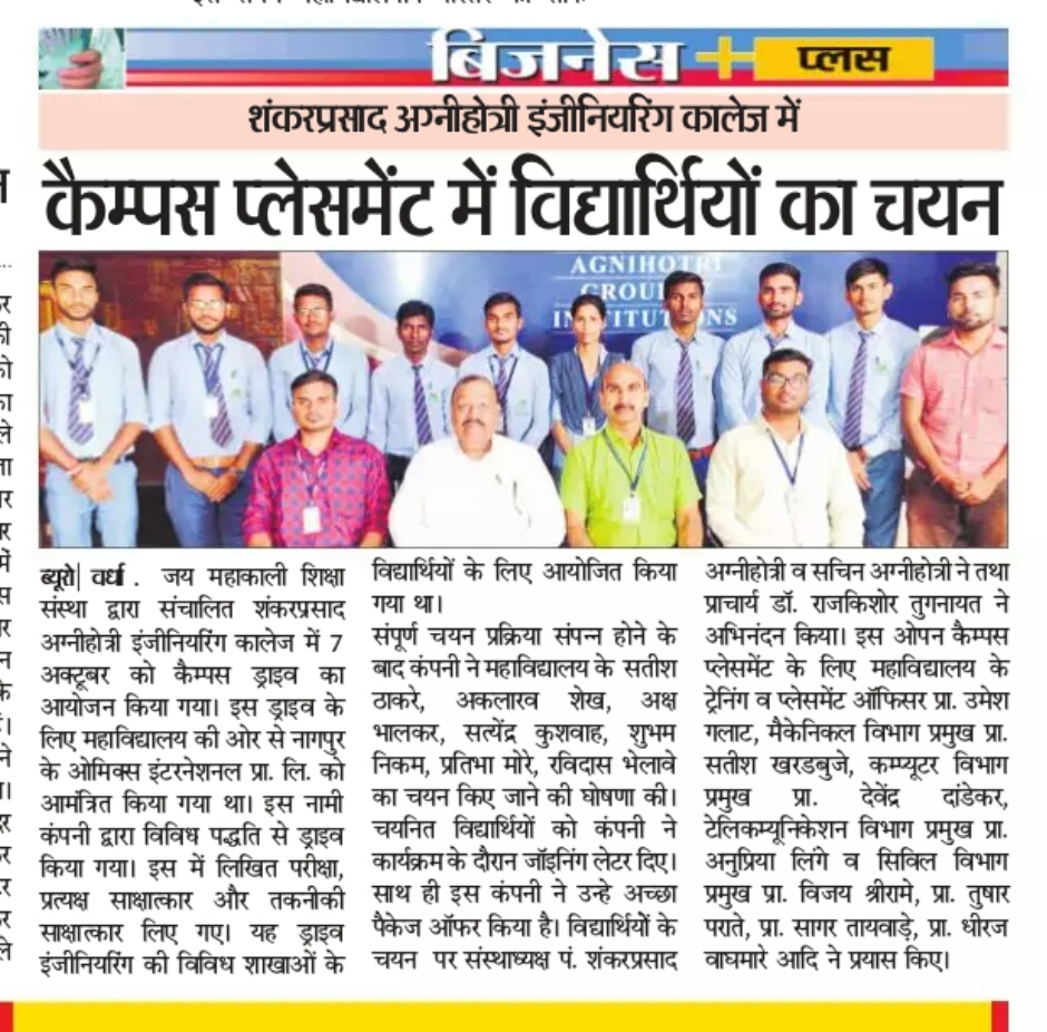 Campus Placement Drive selected students 2023
